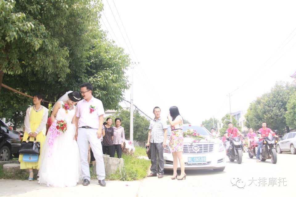 我们骑车在旁边做婚车。