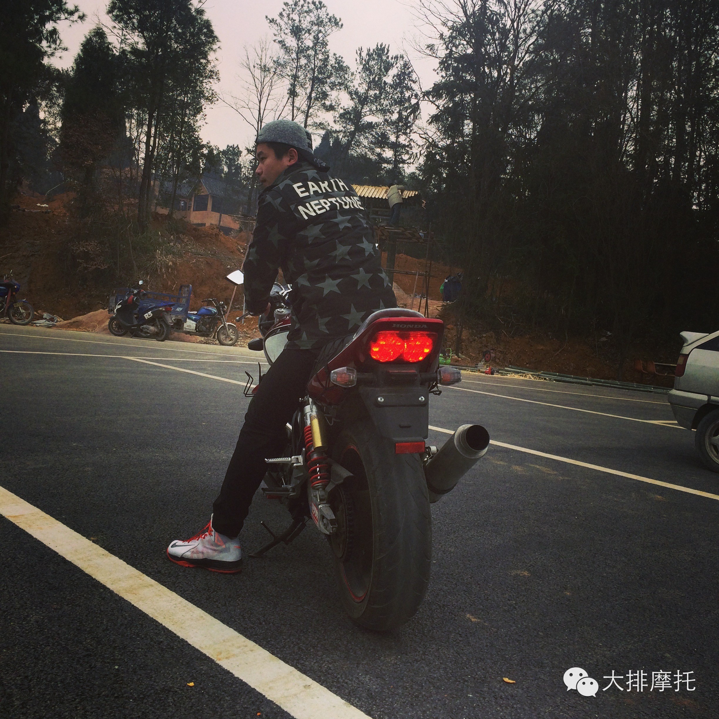 然后慢慢认识了骑匪王的阿冰 ,那时候第一次骑大排 在学校兜了圈 。觉得自己是多么与众不同 就是这种心理,现在回想起觉得当时自己真是幼稚。概每个人都有过幼稚的时候 然后遇到某件事情,  再成长起来 。高考完的时候, 小冰他哥结婚 。