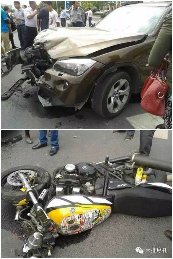 (下面附两张从交警朋友那取得的事故照片,请大家引以为戒穿戴防具注意安全!)