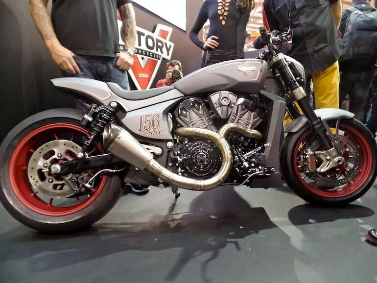 与胜利目前在产的美式巡航不同,“点火”是量产型高性能摩托车的原型,散发出强烈的冲刺赛车味道,包括强韧的倒立式前叉、宽大扁平的一字把手、单人座垫、精简的前挡泥板等。
