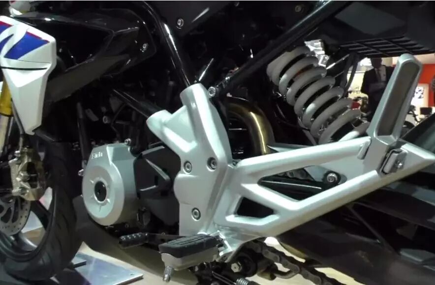 与威风堂此前报道的一样,这颗单缸发动机采用了不寻常的气缸头,即前后倒过来的结构,排气管直接从后部伸出。宝马声称,此举主要目的是降低整车重心和提高质量集中化程度,从而优化G 310 R的操纵性能。