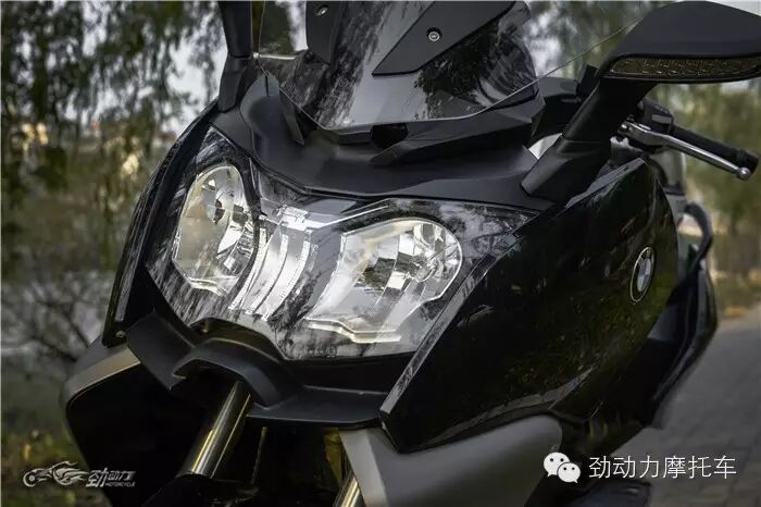 前不久,编辑部的几位大佬们刚刚试驾完3款踏板车。借着这个热乎劲,再为大家介绍一款中量级的豪华踏板车——宝马C650GT。 一说到宝马,我第一个联想到的就是运动性能。一个充满着运动基因的品牌在踏板车领域又会有什么样的作为呢?是妥协?还是坚持到底?在骑上它之前,我充满着好奇心。 第一眼看到这款车,犀利的大灯、硬朗的线条,给我一种概念车的感觉。车身的饰板大多由锐角形状构成,搭配宝马的蓝天白云标后,有种相得益彰的感觉。大灯由远光灯与近光灯两个灯体共同构成,白天行驶时大灯内只有近光灯亮,非对称的感觉可能是宝马摩托车保留下来的家族设计特征吧。