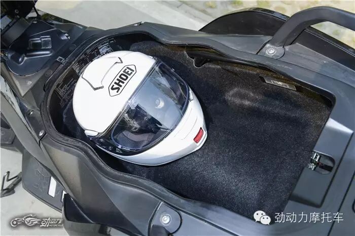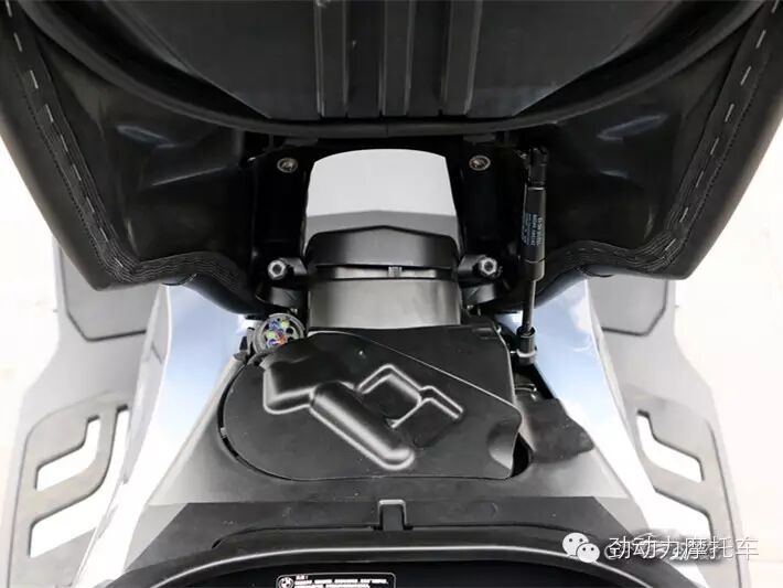 说到这里,我不得不称赞一下宝马摩托车的做工。车座下的储物箱内部全部用软性材质覆盖,放头盔的时候能够避免头盔被划伤。另外宝马的车座是通过液压杆支撑的,显得非常上档次。