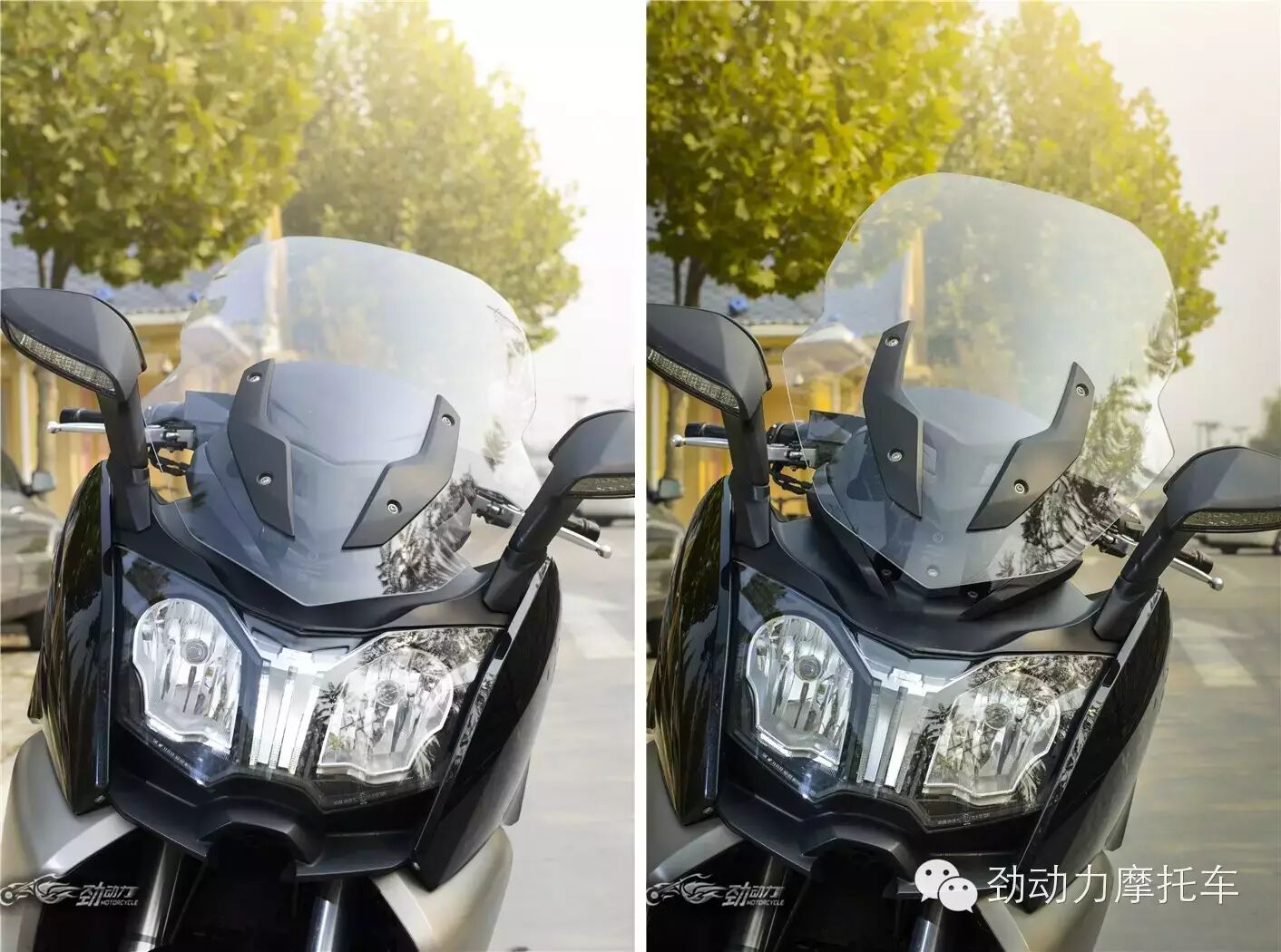不过拧动油门走起来之后,感觉声音变得有点低沉了,加上动力也爆发了出来,谁还有心思在意声浪的音调呢? 起初对于这样一辆整备质量达到261公斤的大踏板有些敬畏,但是拧动油门出发的那一刻,感觉到了充沛的动力。骑行过程中出色的制动表现,得益于它的前轮双制动盘配合单向双活塞制动卡钳,以及后轮单制动盘配合单向双活塞制动卡钳。前后联动制动系统也能够更好地保护驾乘者的安全。而ABS防抱死制动系统也已经成了宝马摩托车全系标配。 一路游走于城市之间,感觉宝马C650GT没有小型踏板车的轻巧,不过大尺寸轮辋加上长轴距能够带来超凡的舒适体验。与以往试驾不同的是,我并没有骑它跑高速的想法,即便它的极速能够达到每小时175公里。在我脑海中踏板车应该是城市通勤的交通工具,所以更多的时间我用在了上下班代步及市区骑行上。 不得不说,骑宝马C650GT这款车代步相比那些更大的街车、跑车、旅行车、巡航车要方便不少。风挡能够抵挡大部分正面来风,两侧的护板也能将吹向膝盖的气流进行引流,再加上免去了换挡操作,自然让骑行途中轻松了很多。