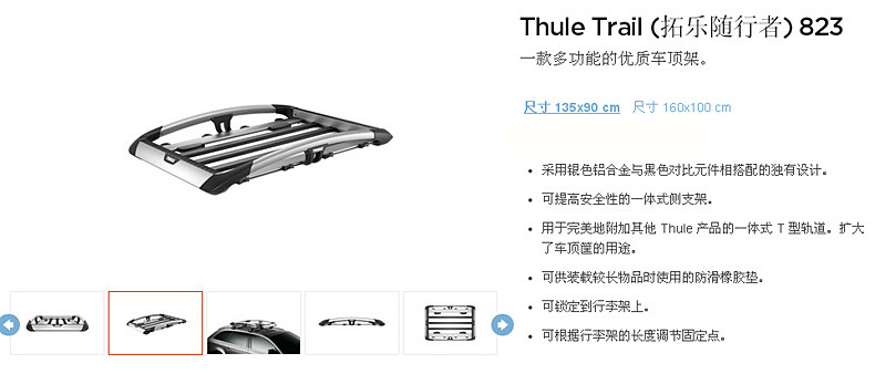THULE 拓乐 铝合金 越野车顶筐 suv轿车行李架筐 汽车改装用品 823/824 |