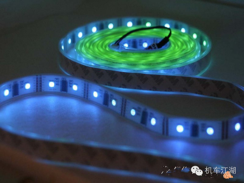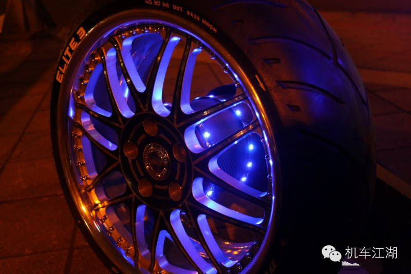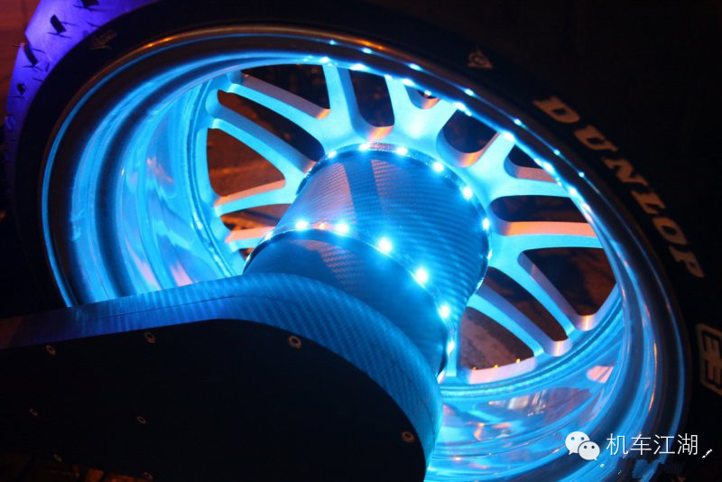 ↑七彩炫色的LED跑马灯条,让车身在暗夜里就如同风火轮一般,高调又显华丽