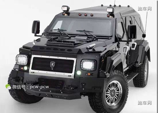 Knight XV,目前风头最劲的彪悍怪兽,因为所有人都告诉你,它是一部SUV,一部豪华的SUV,一部防弹的豪华的SUV,劲呐!车长6米,全宽2.4米,全高2.5米,车辆空重5.8吨,提供全套的防弹及强化改装,内装奢华选件几乎上不封顶,全车最终整备质量可达10吨,有着近乎物流级别的承载额度,不论是防护需求还是享乐需求,全都可以有。下图就是流传最广的车辆外形图片,拎出一部目前可知最豪气的SUV出来比较,青出于蓝的自信显露无疑。