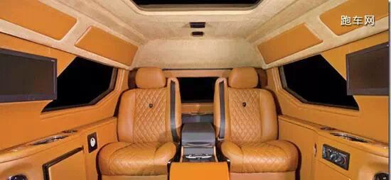 既然概念有了,Knight XV 自然就要围着概念做足文章,都说是“超豪华”的“装甲车”了,就要有配得上这些名头的配置,先看看这个超豪华,征服公司宣称十五世骑士全车内装除纯毛地毯之外全部采用名品真皮包覆;车内集成目前电子市场上所有主流的音、视频播放装置,并提供丰富的外接电子设备接口;车内6个独立的座椅除了前面四个为6向自动调节之外,后排主座椅更是采用航空用豪华公务机座椅;剩下诸如豪华礼车都有的后座舱自动隔音玻璃、天窗等常见设备也一应俱全。