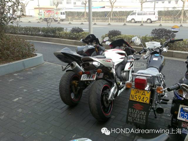~好了又跑题了~~当时来到了传说中名不见经传的“军~体~驾~校”广中路444号,在具体校学车的那段时间,看到了旁边一家大排量摩托车维修店,店里的车让我瞠目结舌,水流不止~当时是口水~~~特别是门口停着的3辆车中的黑白款04CBR1000RR直接把我征服,没有任何的反抗,从头到脚,从血管到毛孔,所有的声音都告诉我,他是我的目标,对就是他!