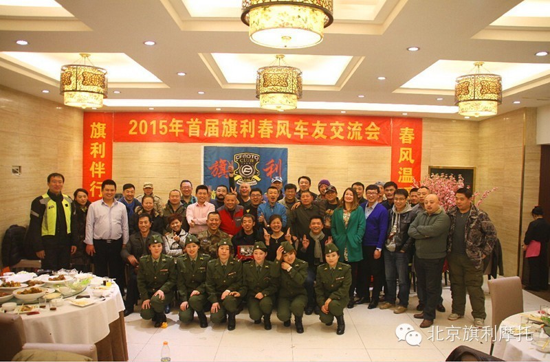 多年来,北京摩友年末交流会一直给摩友带来期盼和开心,新的2015年,主题为“2015年首届旗利春风车友交流会”的活动,将春风摩友召唤在一起! 因为摩托车、因为共同的爱好,大家相互相知,一辆车、一个人、一件事、可能是我们生命中的一小段,但欢乐能让这些美好的回忆一直留在脑海! 2015年1月25日这次盛会大家如约而至齐聚旗利旧宫店,赏车;赏特技;赏军装秋香。注:秋香(军装飒妹)春风动力工厂领导远道而来,签到奖,幸运奖;1,2,3,4等奖,摩托骑行知识;激情互动游戏:臀舞;幽默开心答题,掌声欢笑声此起彼伏一片欢乐的海洋。请跟小编来回味这幕幕经典时刻!  签到现场,车友们陆续到来!前六名车友获得签到奖后 在售车大厅里赏车,瞧~我们的小狒狒侉子给不给力?超可爱哦~