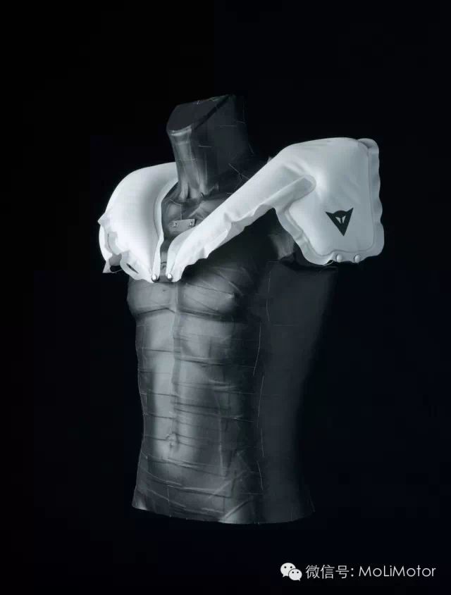 Dainese 的D-Air 系统为第一款无线控制的骑士气囊系统,于2000年推出原型,并在2006年进行赛道测试。经过多年的实验,并投入MotoGP 等顶级赛事验证之下,最后根据骑士需求,推出赛道版与街道版两种版本。赛道版主要针对颈、肩等部位以气囊进行保护,克服一般皮衣无法防护的位置如颈部、锁骨等。另外为了竞技需求,赛道版的D-Air 系统也比街道版更轻。