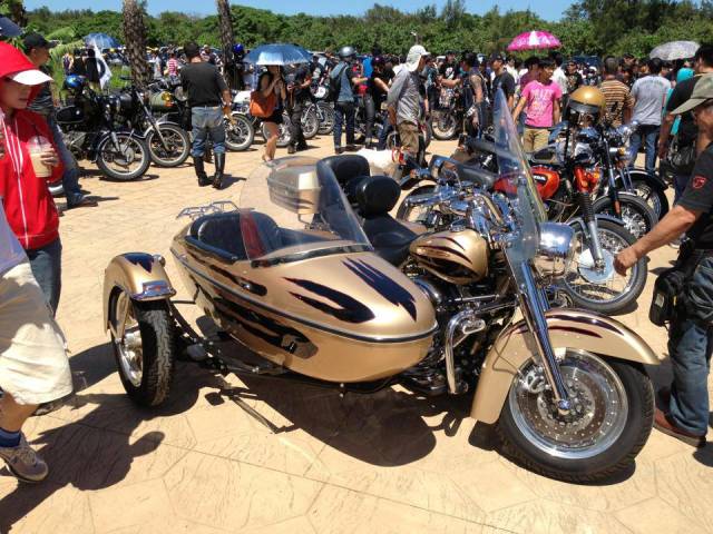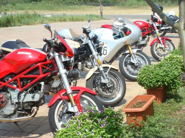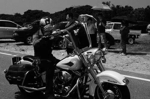 台北莫内咖啡馆 飚车族的乐园 距离台北市四十多公里的平双公路途中的平溪“莫内咖啡馆”休息站,是台北飚车族的乐园。 每当假日,喜好飚车的骑手们便会骑着自己的豪华摩托飚往平溪通双溪的公路上进行休闲健身运动。 平双公路是台北市东部一条较为偏僻的山区公路,往来的汽车并不多,更多的是飚车族的各种豪华摩托。 在半山腰的“莫内咖啡馆”,是一块很大的平地,可以停放百辆以上摩托车,是飚车族的休息站。这里四周青山环绕,空气清新,令人感到心旷神怡。 莫内咖啡位于106县道66.1公里处的大转弯旁,由于这里刚好是106县道的中途点,自开幕以来,一直受到游客欢迎,特别是常在106县道上驰骋的重型机车骑士们,总是把这里当作休憩补给站。 上午九时余,就见到数十名飚族抵达坪上休息,他们停好车后坐下来向“莫内咖啡馆”要了一杯咖啡,坐在一把把撑开的白色巨伞下边的咖啡桌旁悠然自得地喝着。 由于相同的爱好,车友们假日经常在这里汇合,因此他们都混得很熟,见面时总时很热情地相互打招呼,然后天南地北地聊开了。 他们聊着家常,当然他们更多的是在聊着自己飚车的经验和见闻,不过更多的是相互探讨各种摩托车的性能。喝过咖啡之后,还相互参观车辆,以一睹为快。 这 些飚车族中年轻人较少,大部分都是四十至五十多岁的中老年人,他们大部分都是事业有成,有财富积累的企业老板,所以他们购买的摩托车价格都比较昂贵,最便 宜的七八十万新台币,贵的达到二三百万,远远超过中低价格的轿车。他们中大部分家中都有小轿车,但他们更喜欢骑摩托飚车。 一位骑着一辆豪华“宝马”车上山的黄先生说:他今年五十八岁,骑车已有三十年的历史,因他从年轻开始就喜欢飚车,最快速度达到每小时二百公里。 他说家中有三个孩子,但他们胆小不喜欢飚车,都喜欢驾轿车外出游玩。所以家中买了三辆豪华摩托,都是他自己一个人轮流骑,有时还带着妻子上山游玩,让妻子分享一分惊险。说完发出一阵爽朗的笑声。