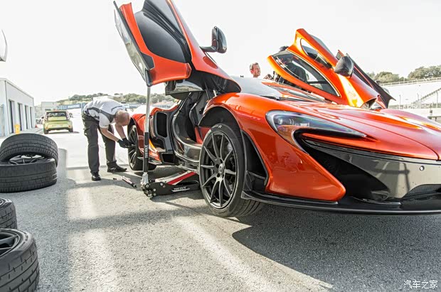 然后,随着迅速减档,迈凯伦P1如电闪雷鸣般直达11弯。随着轮胎尖锐的摩擦声,Pobst将车开到我们身边。车辆开始侧滑,并可以清楚的看见Pobst在与车轮抗争。他努力保持车轮方向以使其向前直方向迅速驶去。当P1越过山头时猛烈加速---车轮出现空转,在接下来的一圈又一圈中也是这样。当迈凯伦P1回到维修站,蝶状车门抬起,Randy面带微笑。“哇,真是令人振奋的驾驶体验,”他说:“简直充满了惊险刺激!”由于每一匹马力仅带动约1.7KG的重量,迈凯伦P1被划分为超级摩托类的恐怖加速种类,但是拥有更简洁的空气动力学设计和四个修补程序,使得这款车加速更快,抓地力更强。事实上,这款车是我们所测验的所有量产车中速度最快的---我们去年驾驶一款还在开发中的车型以148.9英里每小时(约240Km/h)的尾速在9.8秒内完成了四分之一英里(约1.6KM)的距离。