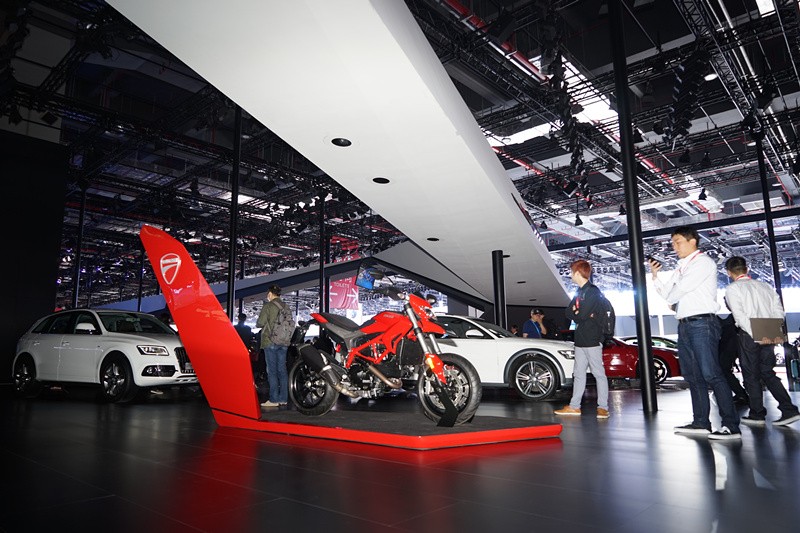 了解杜卡迪,了解机车秘密 | 2015 上海车展 杜卡迪参展 4月20日,意大利顶级摩托车品牌 Ducati 杜卡迪携手奥迪精彩亮相第十六届上海国际汽车工业展览会(以下简称上海车展)5.1 展馆奥迪展台。本届车展作为中国举办的全球性展会,吸引了来自全球各地的知名整车、零配件品牌亮相,同时世界各地的汽车、摩托车行业的新闻媒体也集中对展会盛况进行了全面报道,本次车展杜卡迪和奥迪的携手亮相也吸引了中国媒体和参观者的强烈关注。