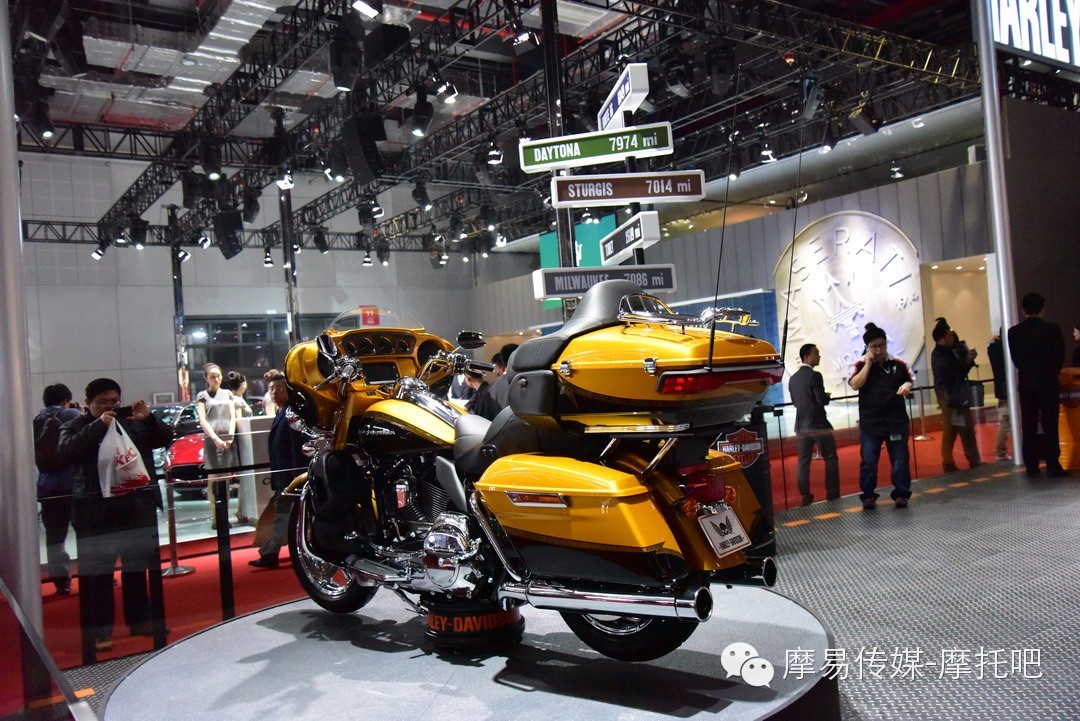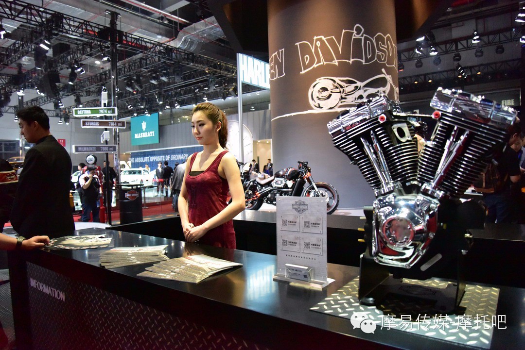 哈雷 戴维森 哈雷的展台可谓高端大气上档次,展出的车型也是琳琅满目,并且在展会上发布了哈屌们期待已久的Street750,7.8888万元的售价十分平易近屌。