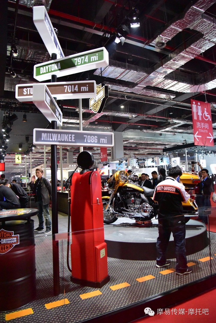 哈雷展台的布置非常有范,让人仿佛置身美利坚大地。