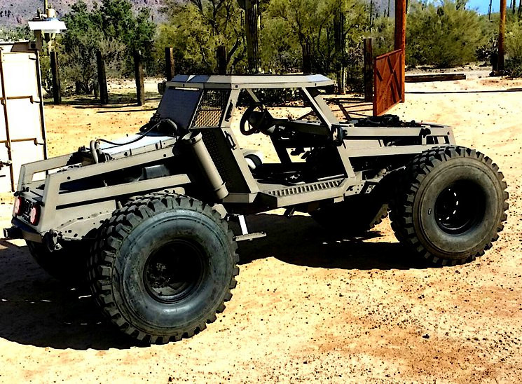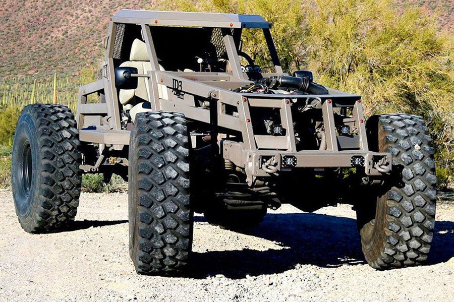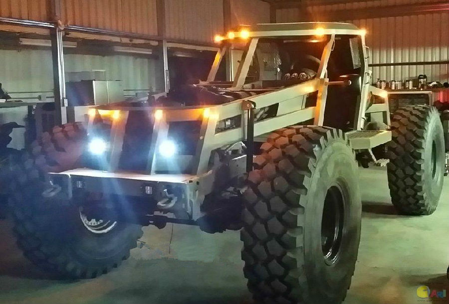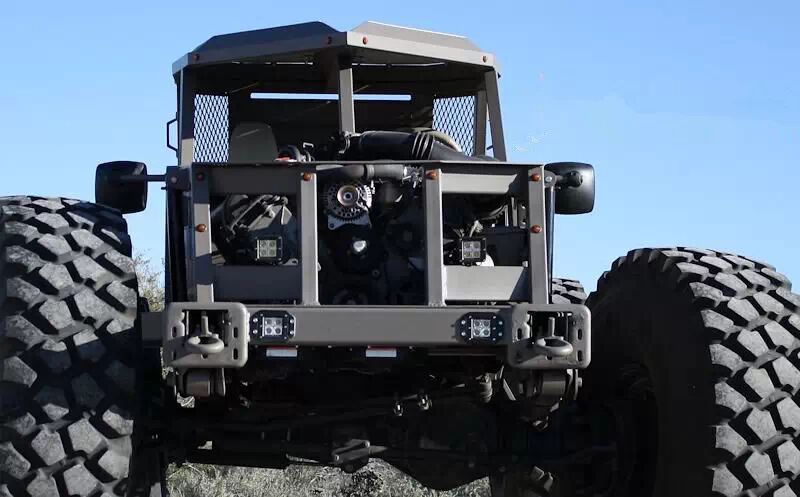 Rockzilla外露的钢制车架与福特Excursion产生不起任何的联系,焊接车架也仅仅是对发动机以及车辆尾部的重要部位进行了保护,这让它看上去更像是一台推土机。虽然这台Rockzilla采用了两座开放式驾驶室的设计,JD3同时可以提供四门版本,甚至能够加装固定轻武器的装甲板。