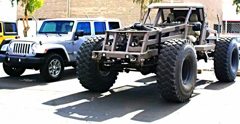 Rockzilla庞大的身躯主要归功于尺寸巨大的轮胎,它采用了米其林54寸的军用子午线轮胎,搭配钢制防脱轮圈可以在低气压是保证车辆出色的穿越性能。即使在胎压降至0psi的情况下,坚固的胎壁仍能支撑Rockzilla顺利返程。不过,硕大的轮胎在更换时会给车主造成不小的麻烦。Rockzilla并没有标配绞盘,JD3坚信它出色的越野能力完全能够应对任何恶劣的路况。不过,如果车主坚持要加装绞盘的话,JD3还是会满足他们的要求。