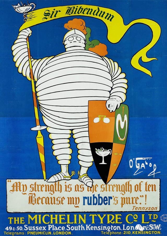 上面这张老广告海报,你能猜到是哪个品牌吗?没错这就是1905年,广告设计师奥加罗普,为米其林轮胎先生设计的广告,这个威武的形象旨在突出米其林轮胎使用橡胶的纯正和高质量。