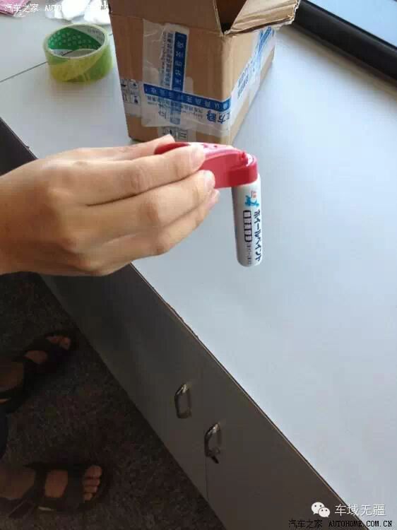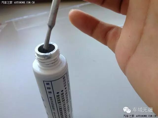 修复步骤: 第一步,将修复漆充分摇均匀,因为修复漆很粘稠,所以需要加2滴稀释剂进去,然后将修复漆与助喷剂拼装起来。