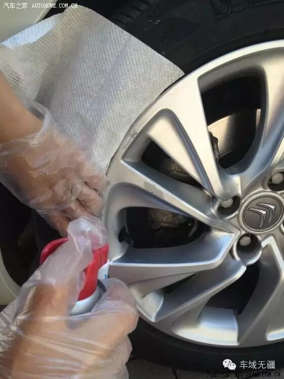 第五步,先摇晃修补漆1分钟,在空地上首先喷出2秒试验一下效果。然后用纸巾将轮胎包装好,以免修补漆对轮胎产生老化作用。然后对准轮毂受损部位,在15-30厘米距离外均匀地喷漆。反复、多次喷漆,直到遮住受损部位。每次间隔5分钟。
