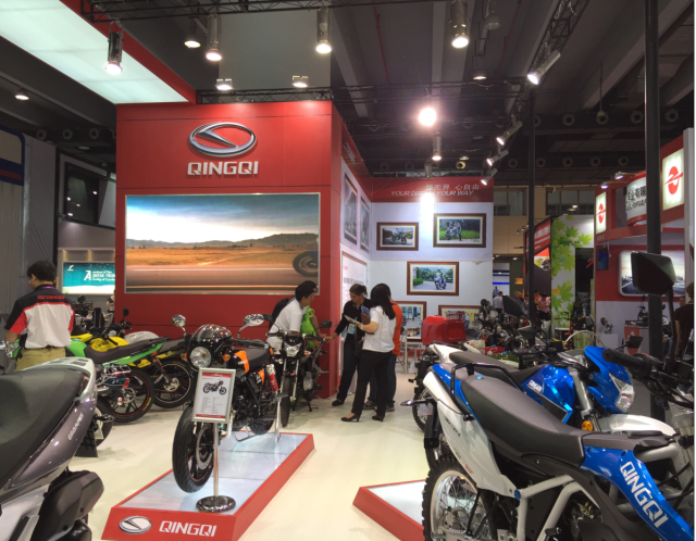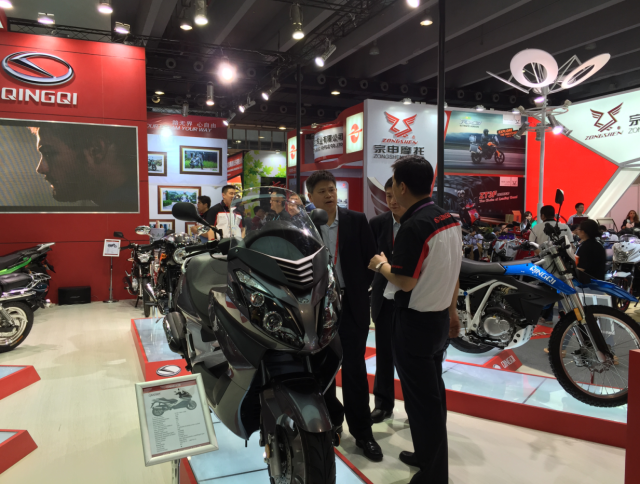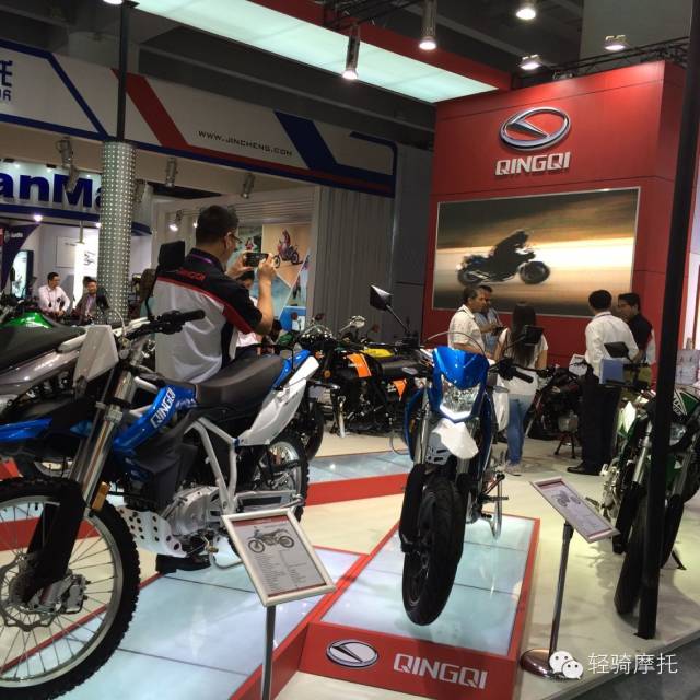 本届展会,公司新开发的公路款和越野款QM-7同时展示,且使用了试模件,样车分别配置了红色和白色外露车架,做工精细考究;GY改型车同时推出了公路款和越野款,使用了新款塑料件、新款消音器,大灯加装了LED灯带,绚丽亮相。