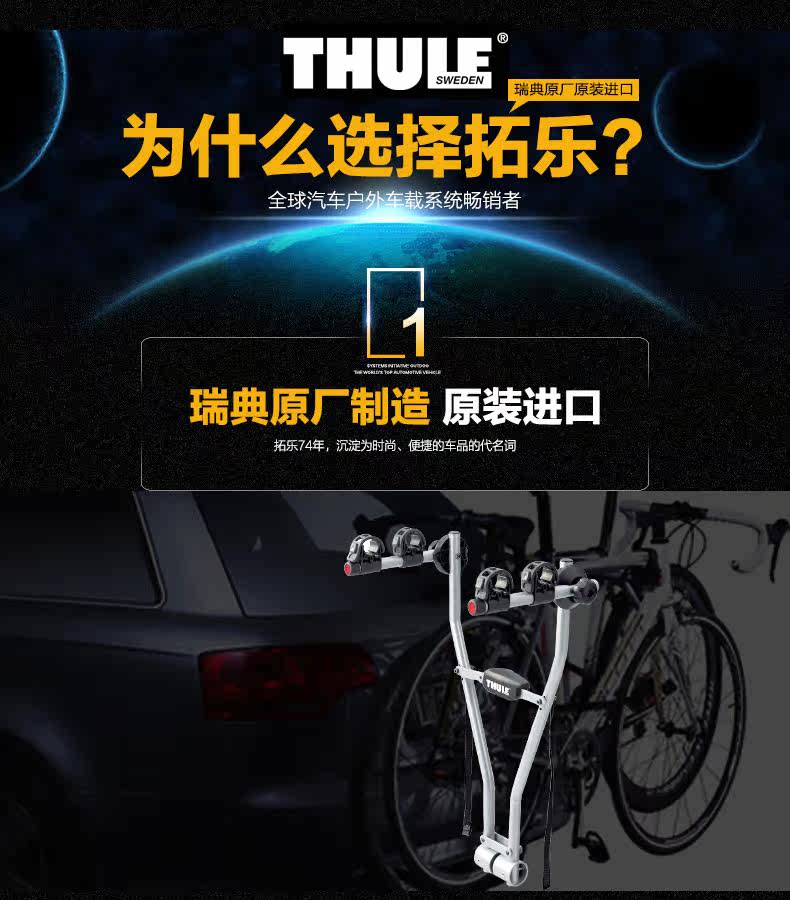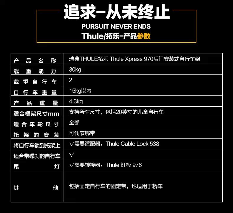 THULE/拓乐 汽车自行车架用品 Thule Xpress 快车 970 车尾后拖自行车 |