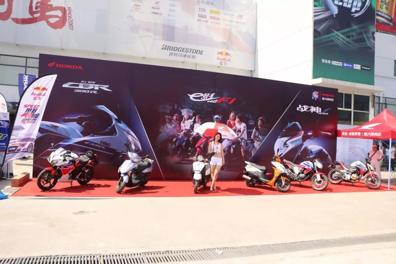 后场与以往一样非常热闹,来自新大洲本田、本田大排店、普利司通轮胎、韩泰轮胎、国产品牌升仕、服饰补品商