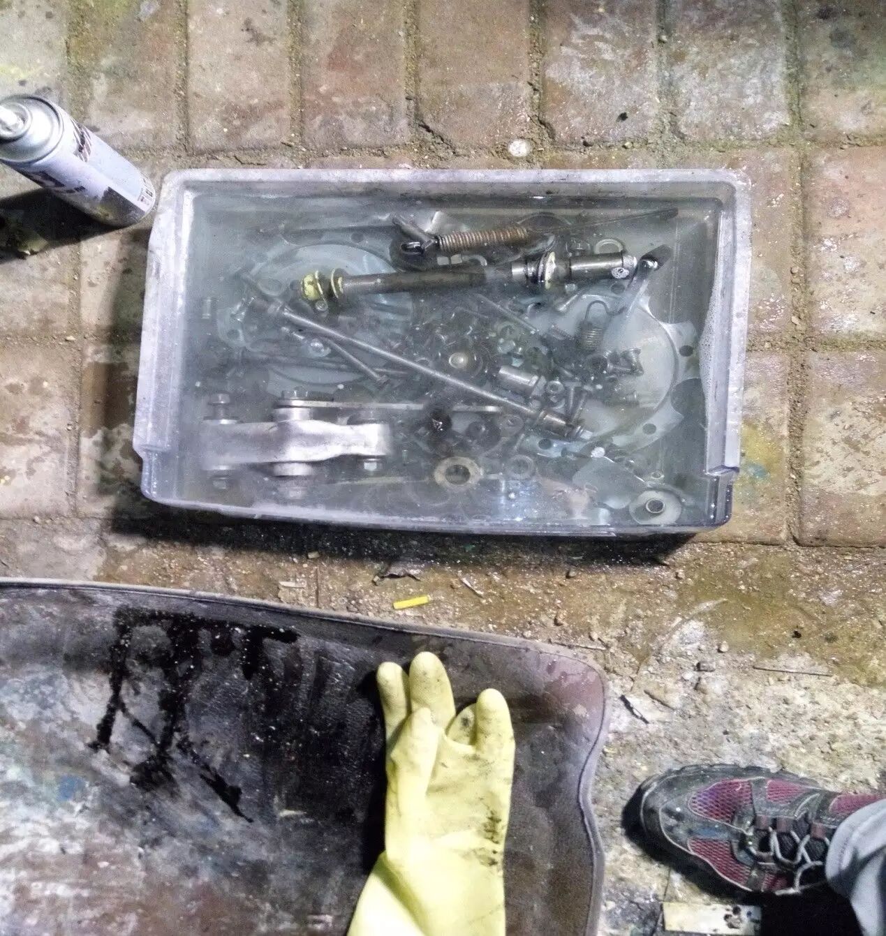 泡了一段时间后的结果;据老板说着除锈液还有磷化防锈的功能。 全车小件浸泡完毕;