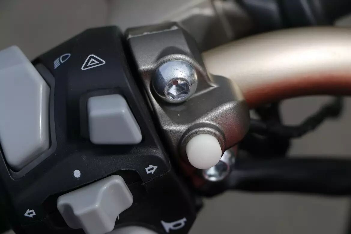 开关总成是不是看着有些面熟,是的,在升仕幽灵二代上,已经在使用这样的组合:背光开关+防摔可折叠牛角。