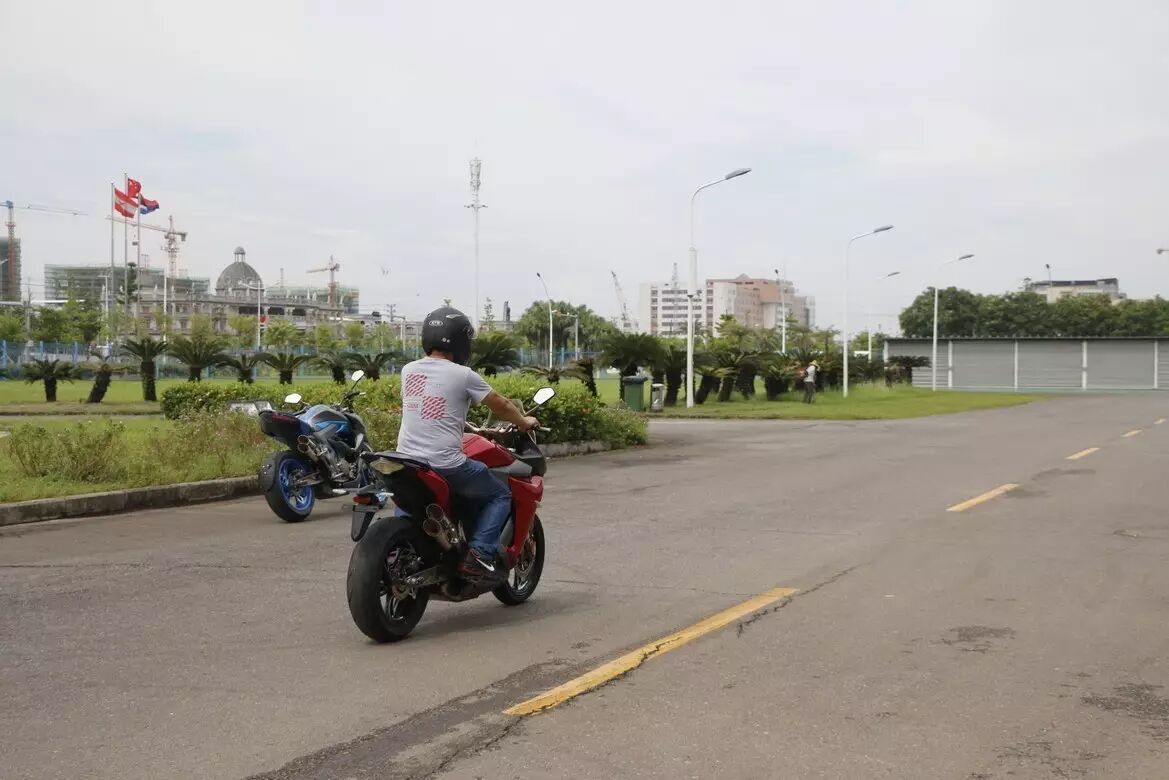 拍摄之余,在厂区内的道路上进行了简单的试骑,310摩旅版的坐姿比较正,骑行中不会给上肢压力,坐垫宽大,较软,座高对于172的我来说很合适,双脚全落地,车重心靠前,掌控感颇佳。