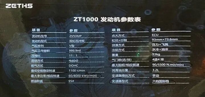 发动机的实际排量999.9cc,压缩比11:1,采用水冷+油冷的冷却方式。气缸采用60度夹角设计,内置平衡轴、双顶置凸轮轴、液压式张紧器。匹配DID高强度正时链条。
