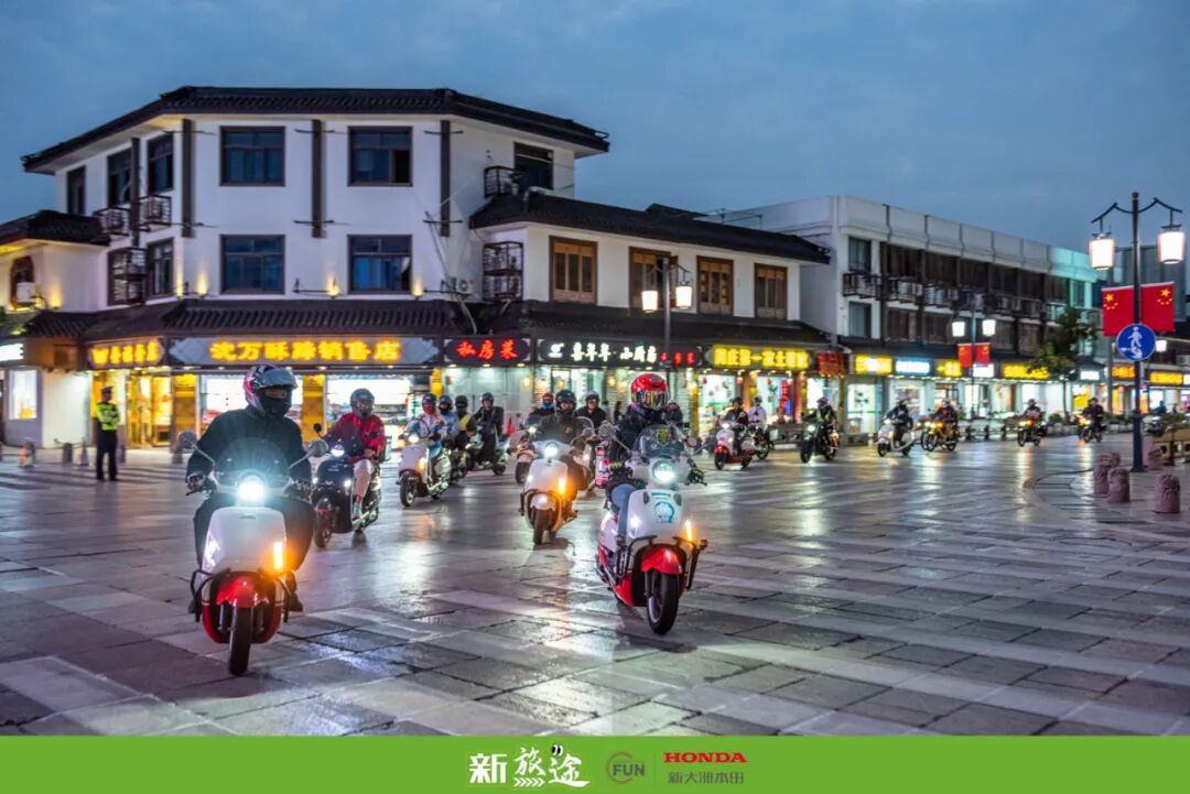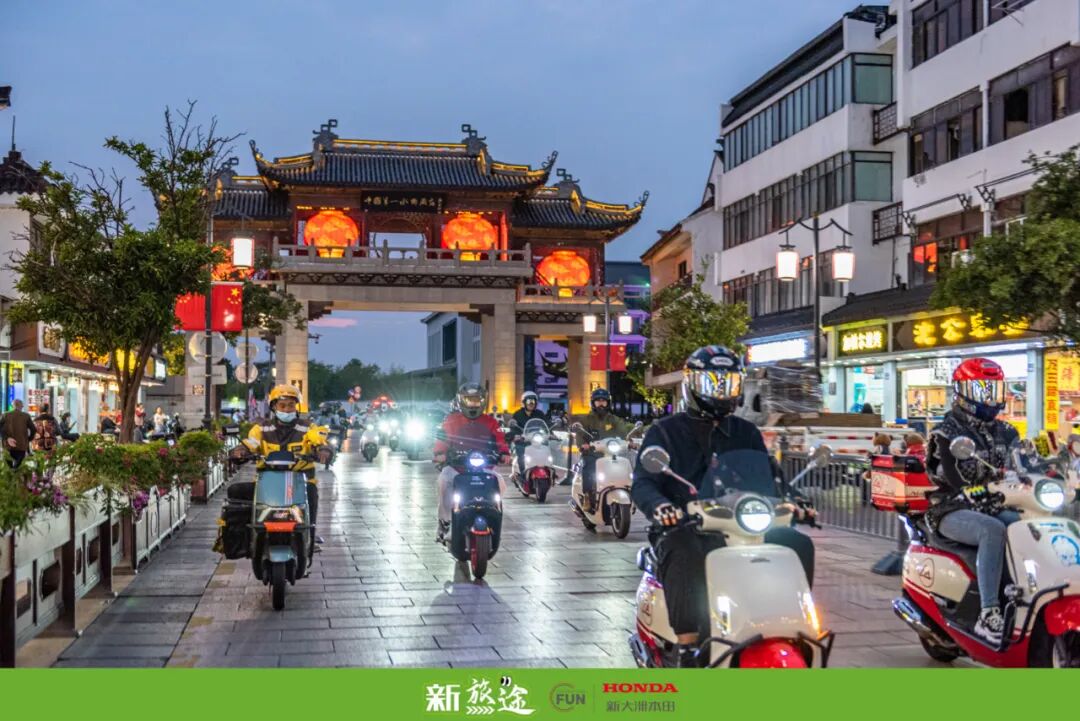 趁夜色朦胧,伴青春如梦,新旅途一行来到了周庄古镇,鱼贯而行,先去酒店落脚入住,回味今天的活动,所有人都是兴奋的,这就是新大洲本田的摩托生活。