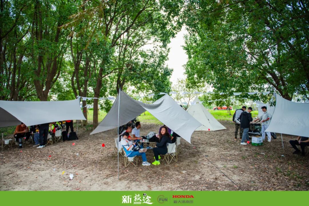 很快到了目的地,这是很具有户外特色的场景,新大洲本田为大家安排了帐篷、咖啡,甚至还有迷你越野练习场地。当然还要感谢热心车主提供的甜点。