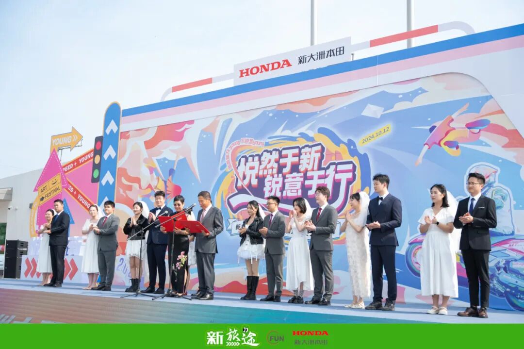 在文化艺术节上,厂内的各种文艺协会纷纷亮相,本次新旅途的车主们也作为车主分队绕行会场一周,仪式感满满。新大洲本田的高层领导还为参加集体婚礼的新人送上了深深的祝福。