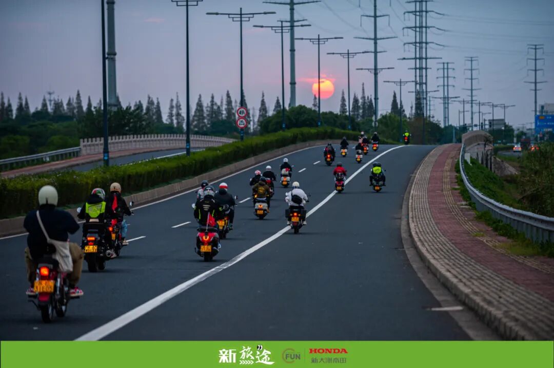 长路漫漫,安全骑行,从下午走到傍晚,天色渐黑,夜悄悄地近了,有新大洲本田的摩托车相伴,时间不觉得在流逝,一如我们精彩的人生。