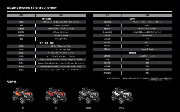 火热销售(现货) 春风X8 800CC CF800-2 全地形车 双座 水冷雪地越野摩托 |
