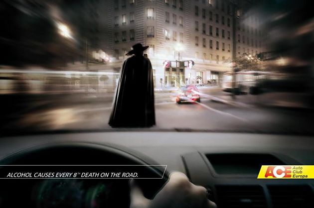 你知道这些人从事什么职业吗?火葬场的员工,他们很希望见到你,但你恐怕不喜欢见到他们吧?别酒驾,让他们轻松的得逞。