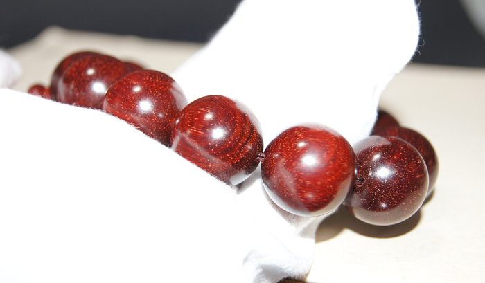 2)再用柔软的棉布盘搓一个星期.如果搓小叶紫檀手串,软布表面会有红色的痕迹,这时你不要慌张,不会影响紫檀手串的质量.