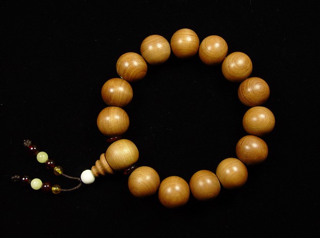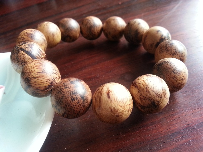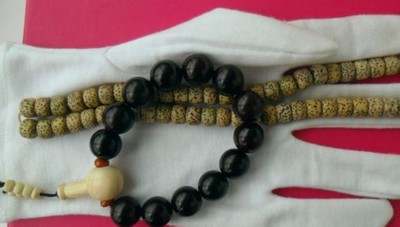 需要特别注意的是:木头珠子不要在任何时候接触较大的水分,如果珠子脏了可以用微微湿润的棉布擦拭几遍就好了,然后放置一段时间再盘玩,盘的时候珠子的所有区域都尽量盘到,特别是孔口,盘珠子最忌的就是急功近利,你只能慢慢来一个过程一个过程的来,随着珠子的变化也可以同时得到一种精神的愉悦。