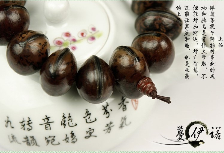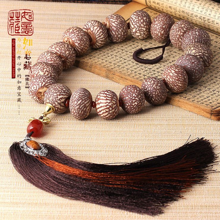 21、莲花,为稀有植物种子。呈圆锥形?,有深褐色、白色两种。质地坚硬,摸起来稍有刺手,其状似莲花,故得而名,莲花出污泥而染?足成就果位的象征。同时在密宗修练莲花部时,须用莲花串珠?对成就菩萨位较有帮助。莲花佛珠随身,可使人心安气定,常保清净。