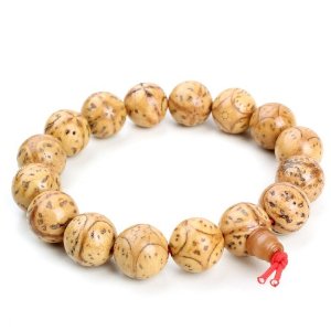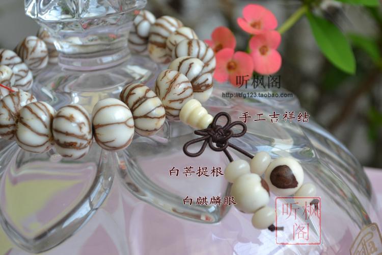 23、白菩提根,为菩提根经过打磨加工而成,有的洁白如雪,有的略呈淡黄,明润悦目。佩带此珠既助修行也可消灾。