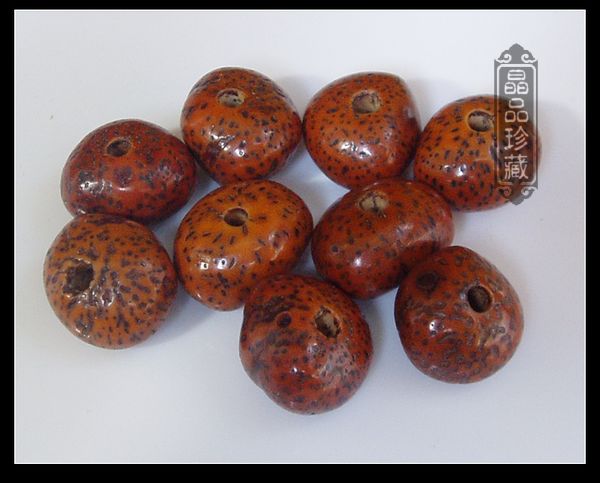 l9、通天眼,稀有果实种子,呈深灰色,粒上有不规则的小点状突起物,奇特的是每一粒上都有一圆形小孔,通天眼便由此而来。据讲此珠可吸收人体病气,常持此珠对增强体质,消除疲劳有帮助。驱除病邪,长保平安,通天眼可助于你。
