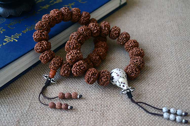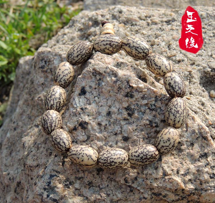 9、天意子,天意子是一种奇特而坚硬的果实。扁圆的形状,隆起办办的曲脊,看似蟠桃,又像细小的蕃瓜。佛经里有天意树,此树随天意而转,悉遂所求。天意子便有其特殊的含义,用此珠修练,顺遂天意,随意佩带,可增福慧。