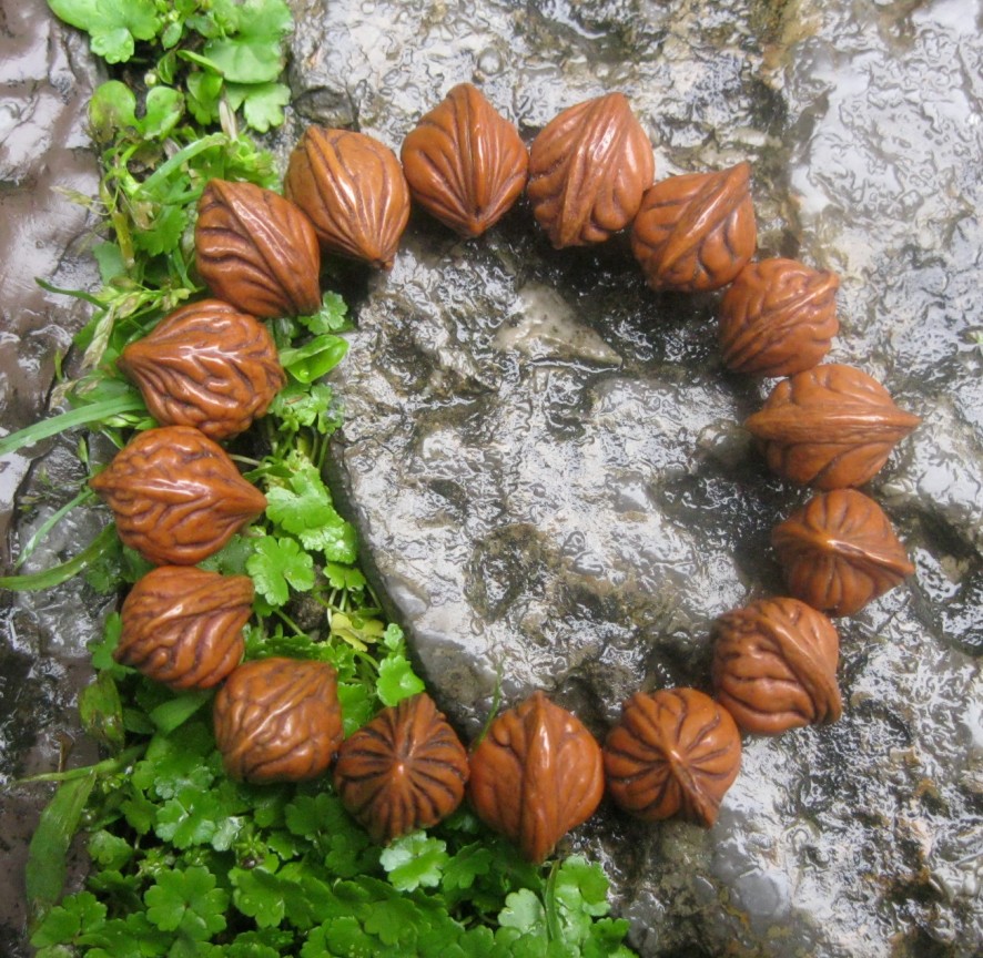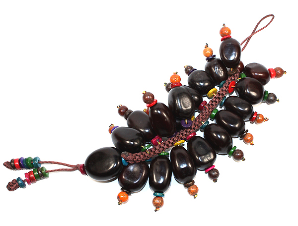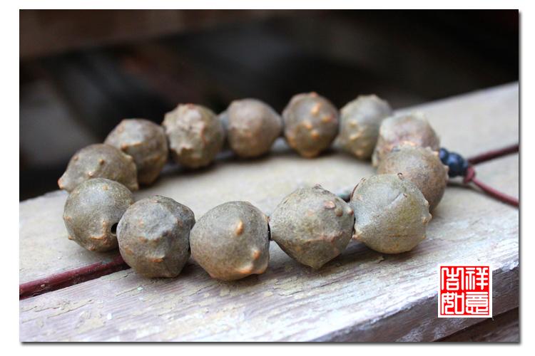 13、摩尼子,摩尼意为宝珠,据说有消除灾难的功能。摩尼子是一种坚硬褐色的果实,表面有许多纹,较为难得。它的驱邪避灾的功能较强,佩带之可助平安富贵。
