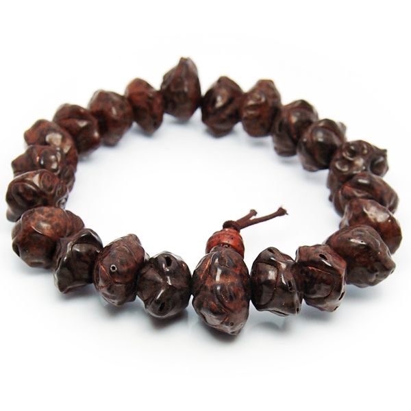 2O、莲花座,为稀有植物果实蒂,呈枣红色,质坚硬,每一粒状似一个小小莲花座,名称便由此而产生。
