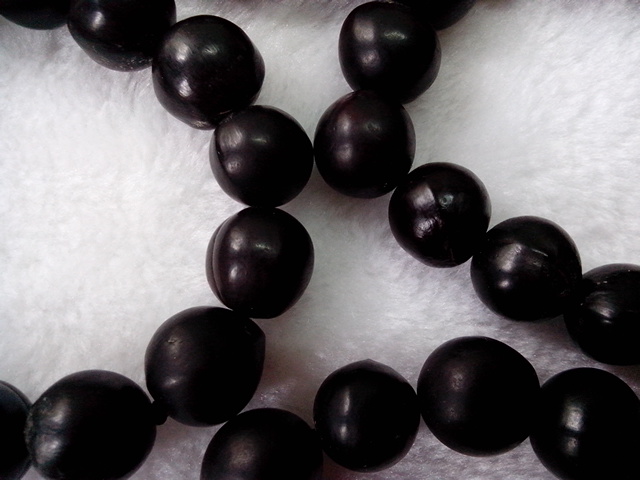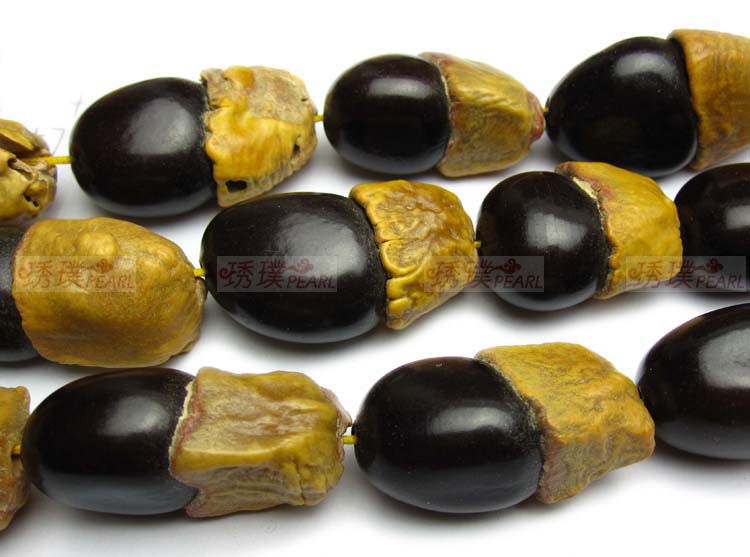 32、铁莲子、铜莲子,为树木种子,呈长圆形,质地硬,有黄、黑两色,黄色称为铜莲子,黑色称为铁莲子。制成佛珠,让人喜欢。