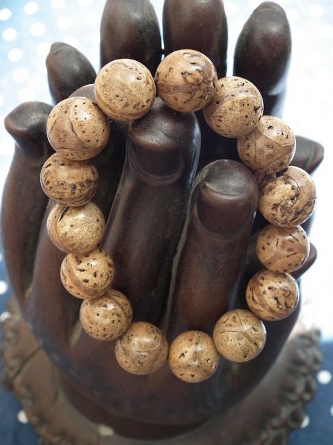 25、天台菩提,为天台山木本菩提,呈白色或淡黄争。天台山国清寺为天台宗的祖庭。当年开元三大十即,善无畏,金刚智、不空将密宗普门大法带来中国,著名天文学家一行法师曾受不空大师传法灌顶。一行法师将密法带到天台,开创天台密宗,实为唐密一脉。故天台菩提子有其独特特色和深遂内涵。