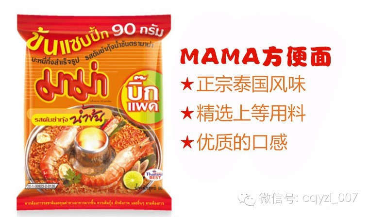 泰式酸辣汤的道地口味,很多游客都买过带回家的,红色外包装是正常辣度的妈妈面,想再加重辣度,可以购买外包装是”橘色”的,味道更浓郁哟!也有绿色包装的妈妈麵,口味较红色清爽一些,包装也有分袋装或盒装。