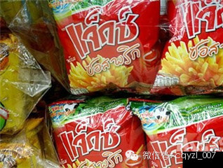 其实就是鱿鱼片,特色是非常辣!刚打开时有一种海腥味,但是真的会让人越吃越上瘾。总共有橘色(大辣)、红色(中辣)、蓝色(小辣)三种,建议第一次吃的人还是从小辣开始,不然真的会喷火。在泰国7-11或超市都有卖,价格在20泰铢左右。